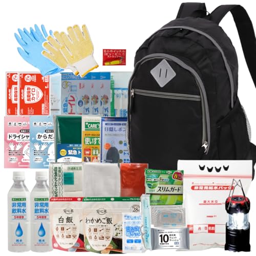 備えて安心 24点女性用防災基本 防災セット 避難 地震対策 保存食 非常用トイレ 保存食 保存水 水袋 口腔ケア ライト 防災グッズ (黒)