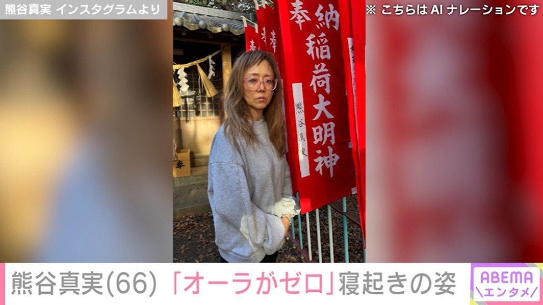 64歳でビキニ姿を公開した熊谷真実(66)、神社での寝起き姿に「オーラがゼロ」「真実姉と分からん」と様々な声
