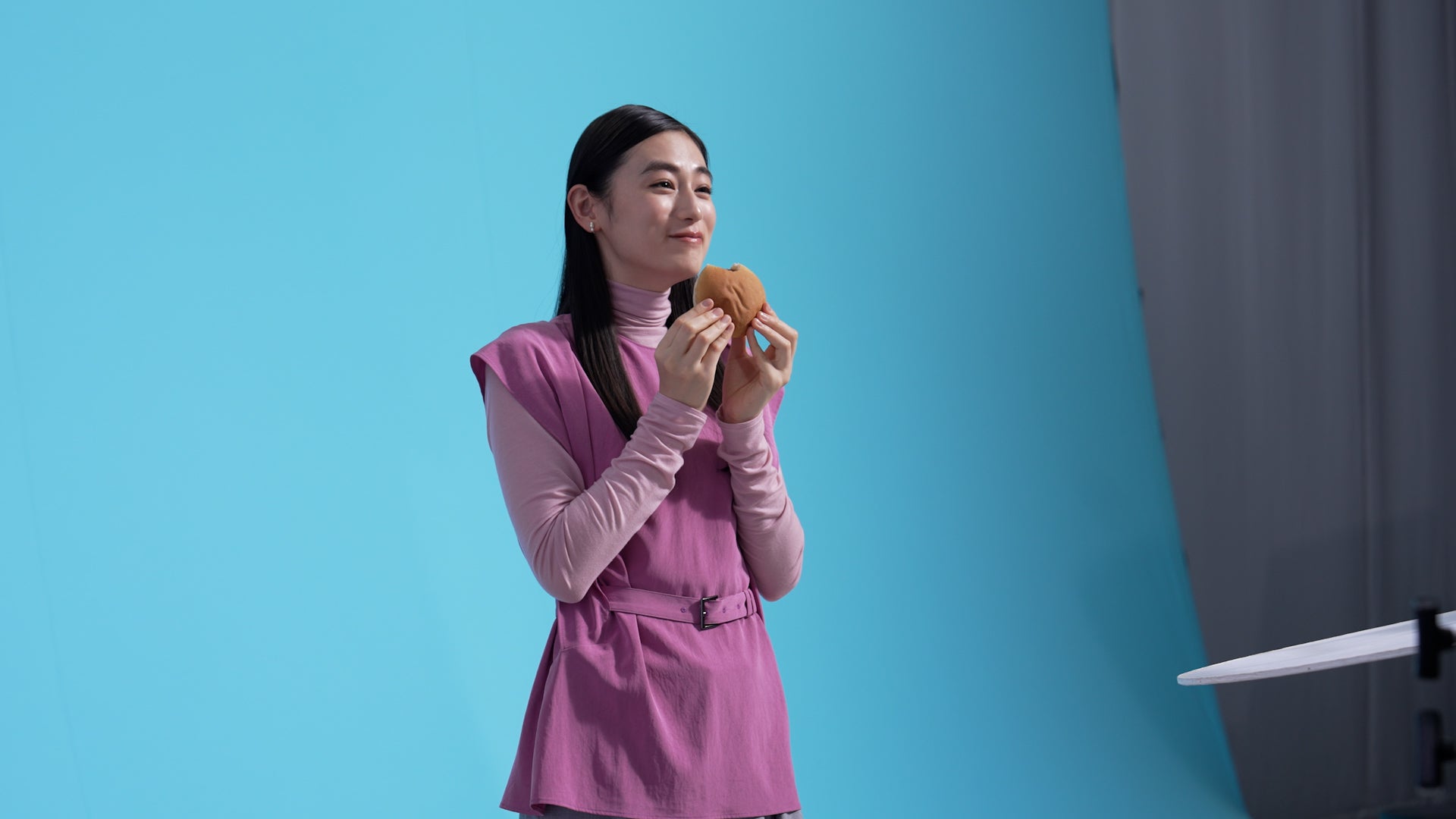 青空をバックにしたセットで撮影は行われた。今回の見どころである吉田がパンにアテレコをするシーンでは、吉田が「もっと食べて食べて~」「僕も食べて~」とアドリブを交えながらパンになりきり、現場は笑いに包まれた。商品を食べるシーンでは、八木がそれぞれのパンの「も~っちり」とした食感を堪能。「美味しくてたまらない」といった自然な笑顔や驚きの表情を見せた。吉田のお茶目な演技と、それに対する八木のクールな視線や笑顔など、表情のギャップも見どころとなっている。さらに「超も~っちりパン」にちなんで、吉田と八木が「超も~っちりな写真(幼少期の写真)」を公開した。(modelpress編集部)