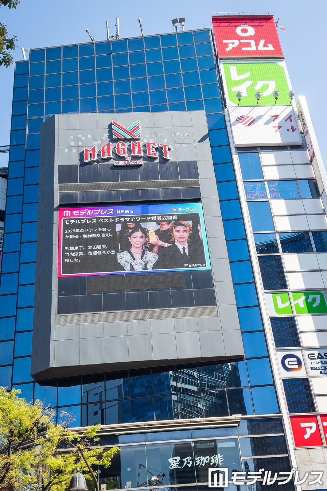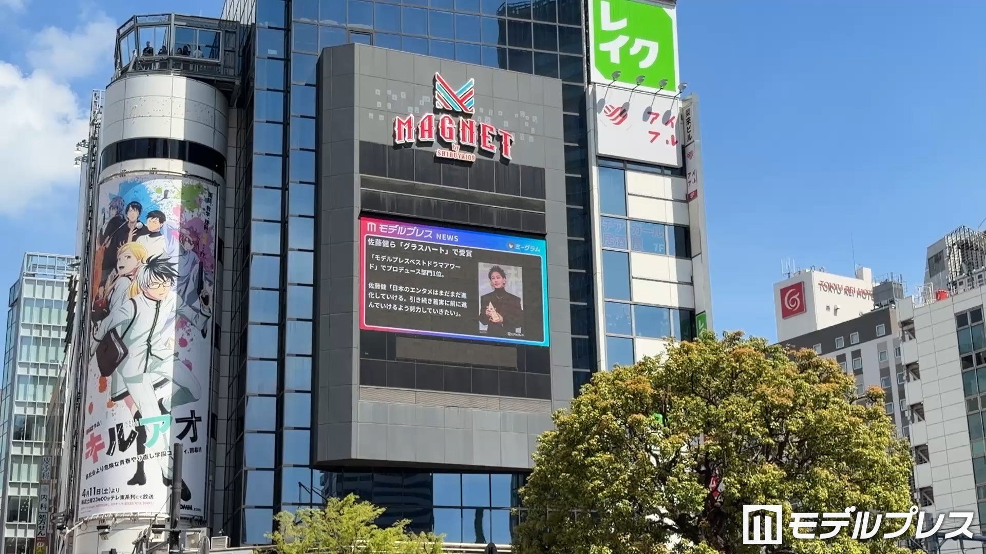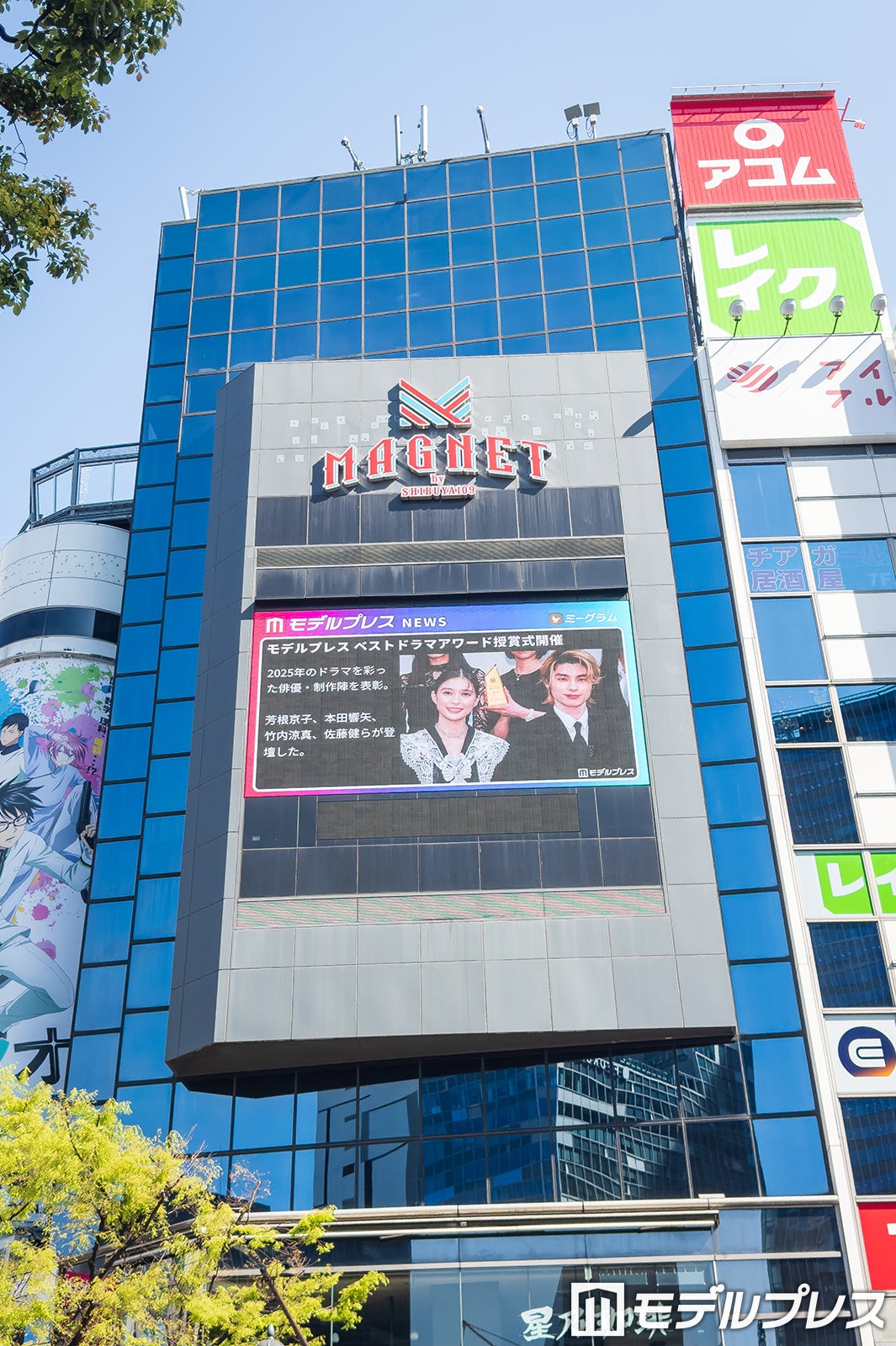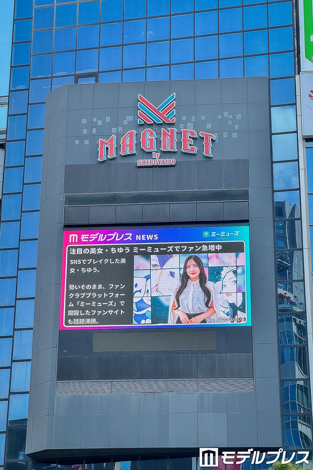 番組が放映されているのは、東京・渋谷スクランブル交差点から見える「109フォーラムビジョン」と、大阪・梅田駅前に設置された3D映像を楽しめる屋外大型ビジョン「dipビジョン」。記念すべき初回放映では、3月に開催され大きな反響を呼んだ「モデルプレスベストドラマアワード」の模様を公開。竹内涼真、芳根京子、本田響矢、佐藤健ら、第一線で活躍する豪華キャストが登壇した華やかなステージの模様を映し出している。さらに、モデルプレスが運営するファンクラブプラットフォーム「ミーミューズ(Mi-muse by Mi-glamu)」で活躍するトップクリエイター・ちゆうの紹介コーナーも。