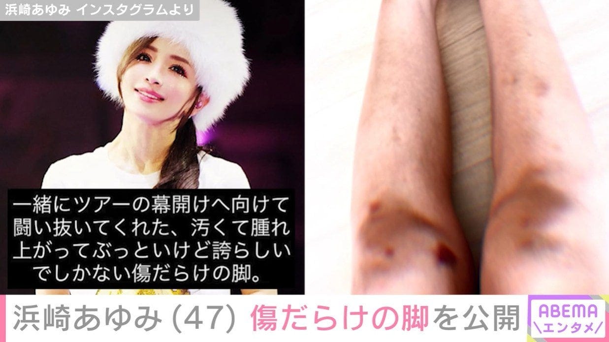 歌手の浜崎あゆみ(47)が、Instagramのストーリーズを更新。リハーサルやライブ中にできたという、腫れ上がった傷だらけの脚を公開した。
