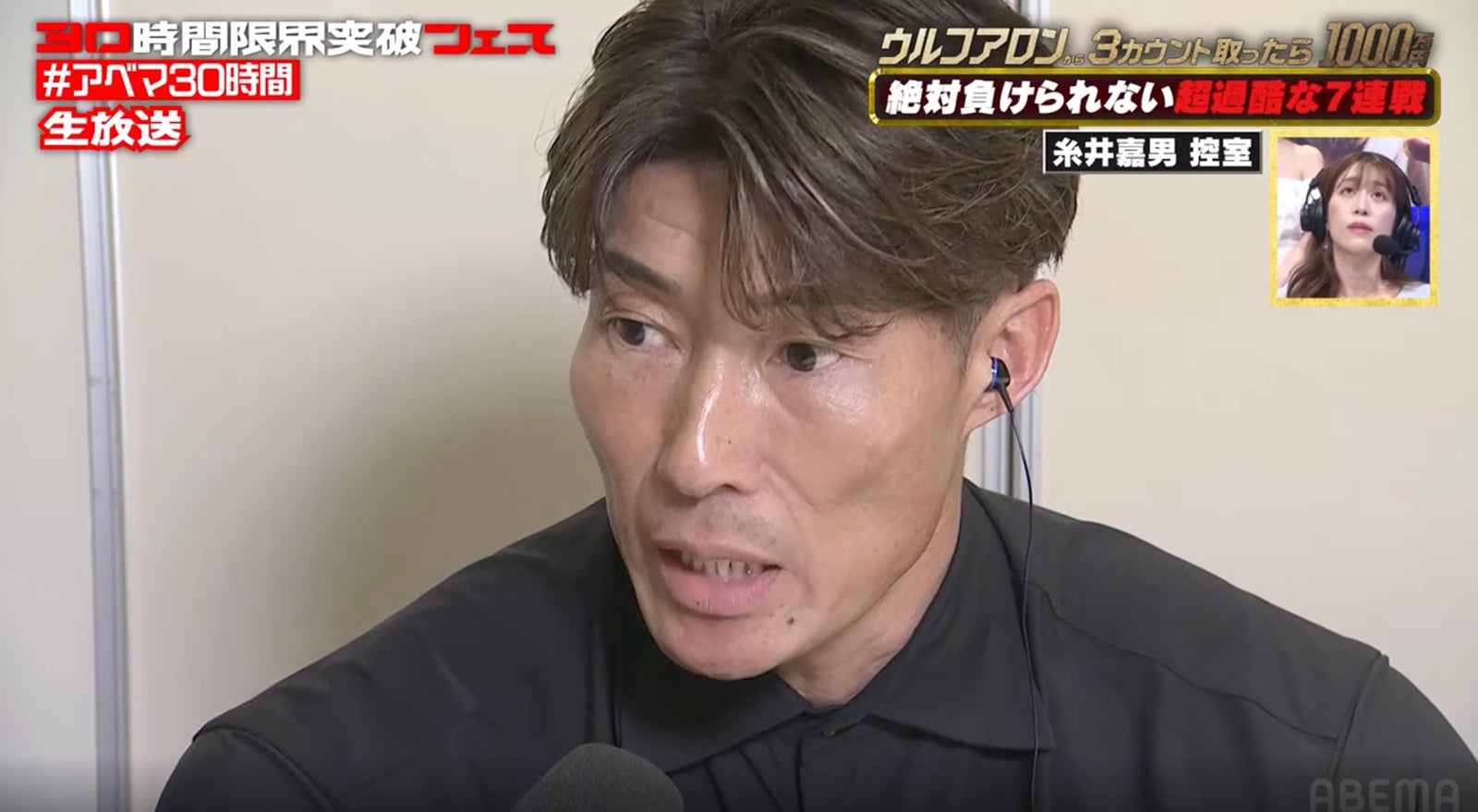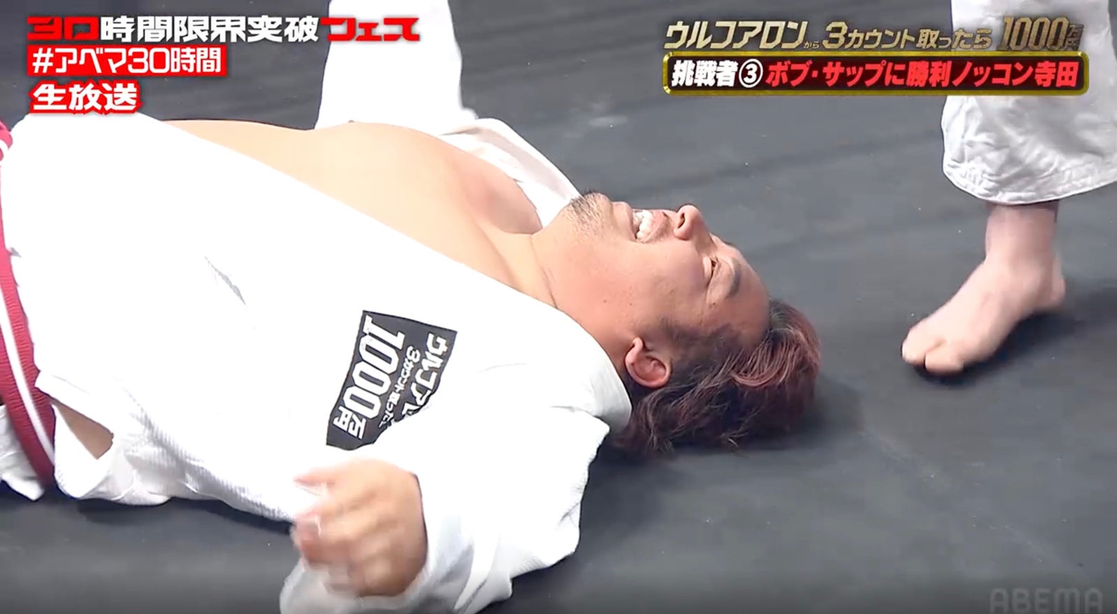 ABEMA(アベマ)が、4月11日に開局10周年を迎えることを記念した特別番組「30時間限界突破フェス」(11日15時~)の目玉企画「ウルフアロンから3カウント取ったら1000万円」第1部にて、糸井嘉男、ノッコン寺田、藤本竜希、カカロニ・栗谷の4人がウルフアロンに挑んだ。