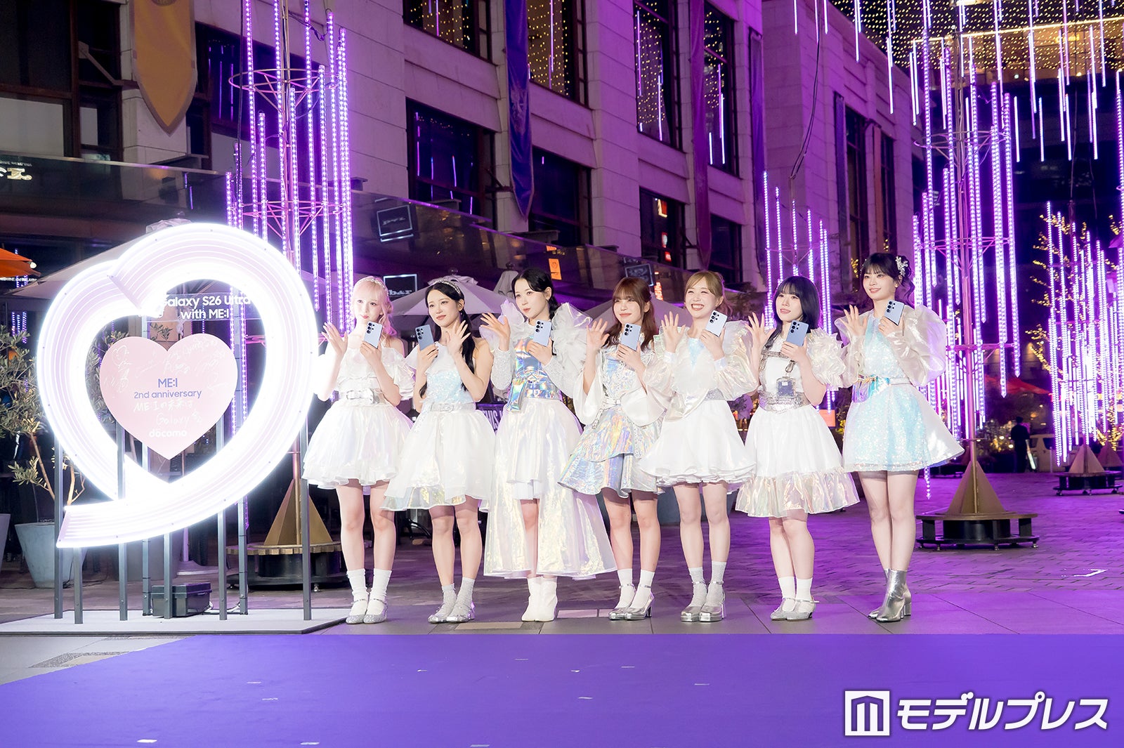 ガールズグループ・ME:I(ミーアイ)の7人が4月17日、都内で開催された「NTTドコモ presents “ナイトグラフィーイルミネーション by Galaxy with ME:I”点灯式」に出席。デビュー2周年を迎え、心境を語った。