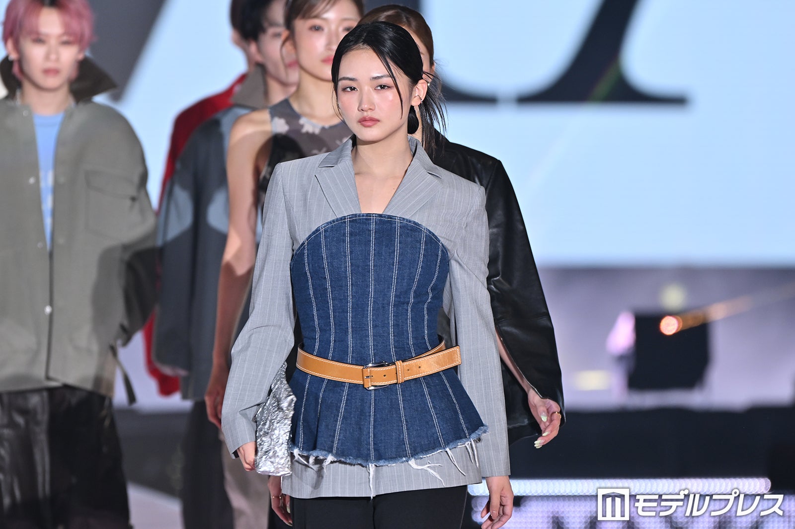 山崎は、ジャケットにデニムのコルセットを重ねた個性的なコーディネートをクールに着こなし。スラリとしたスタイルを活かした圧巻のランウェイを届けた。「ガルアワ2026S/S」テーマは「CUTE WITH A BITE. - “カワイイ”で終わらせない。」