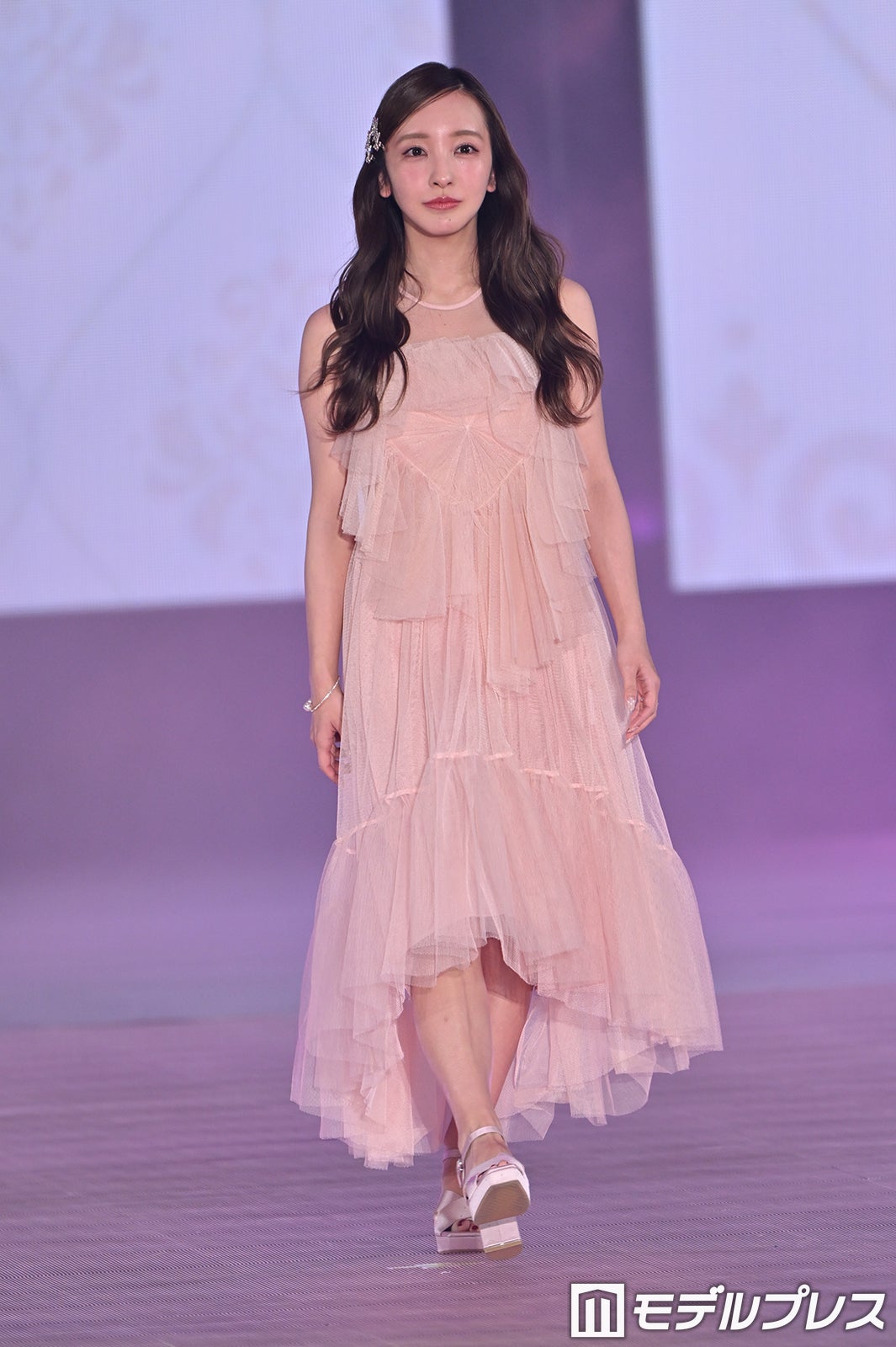 板野は、美しいデコルテが透けるチュールワンピース姿で登場。多幸感たっぷりにランウェイを歩き、会場の歓声を誘った。「ガルアワ2026S/S」テーマは「CUTE WITH A BITE. - “カワイイ”で終わらせない。」
