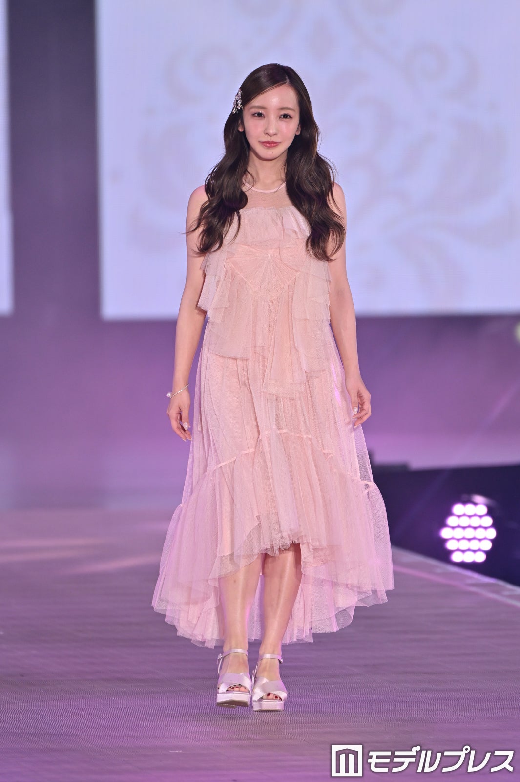 板野友美、美デコルテ透けるノースリワンピ姿 多幸感たっぷりランウェイ【ガルアワ2026SS】