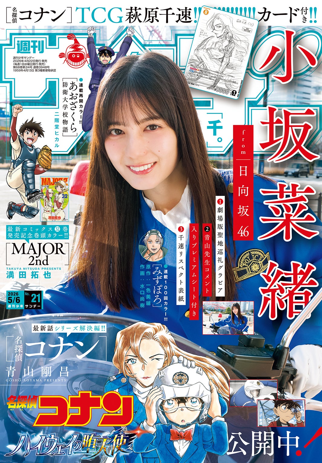 日向坂46小坂菜緒、白バイ隊員姿で劇場版コナンの聖地巡礼「週刊少年サンデー」表紙登場