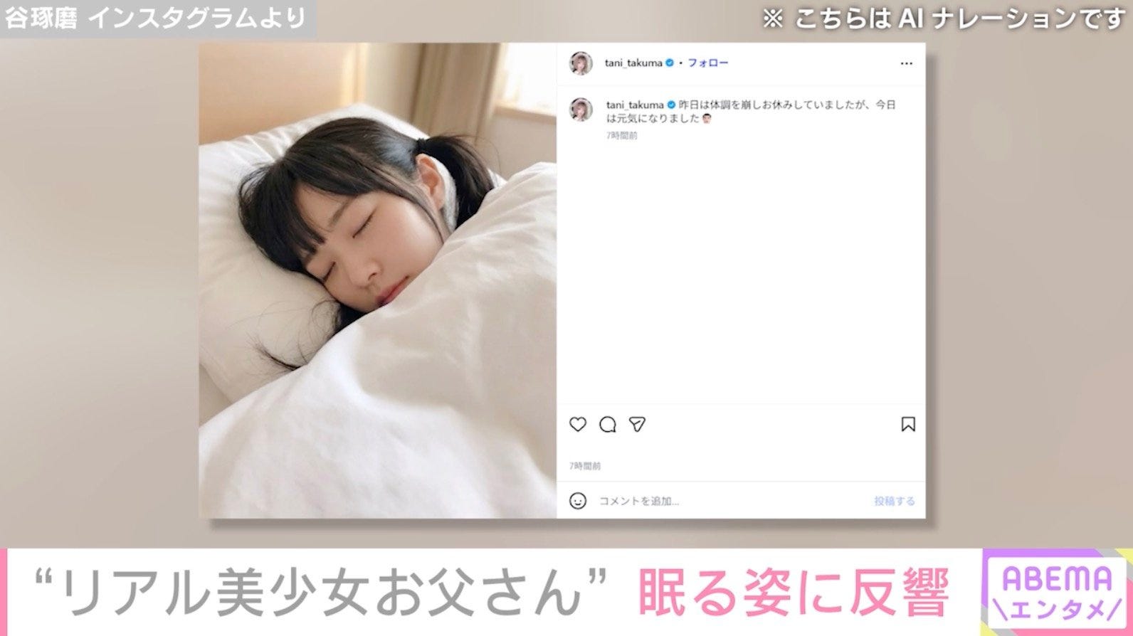 人形のような可愛らしい姿が“リアル美少女お父さん”として注目されている、2児の父親でタレントの谷琢磨(48)が、ベッドで眠る姿を披露し、「本物の女の子みたい」「寝顔も可愛いお父さん」など反響が寄せられている。