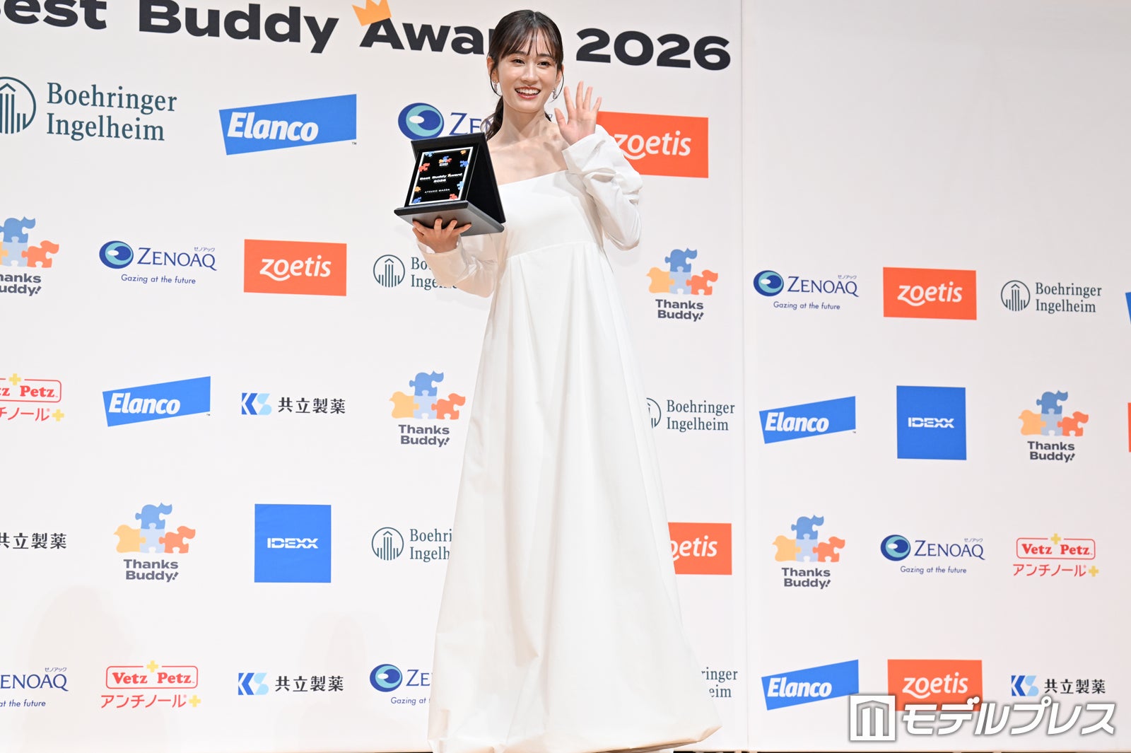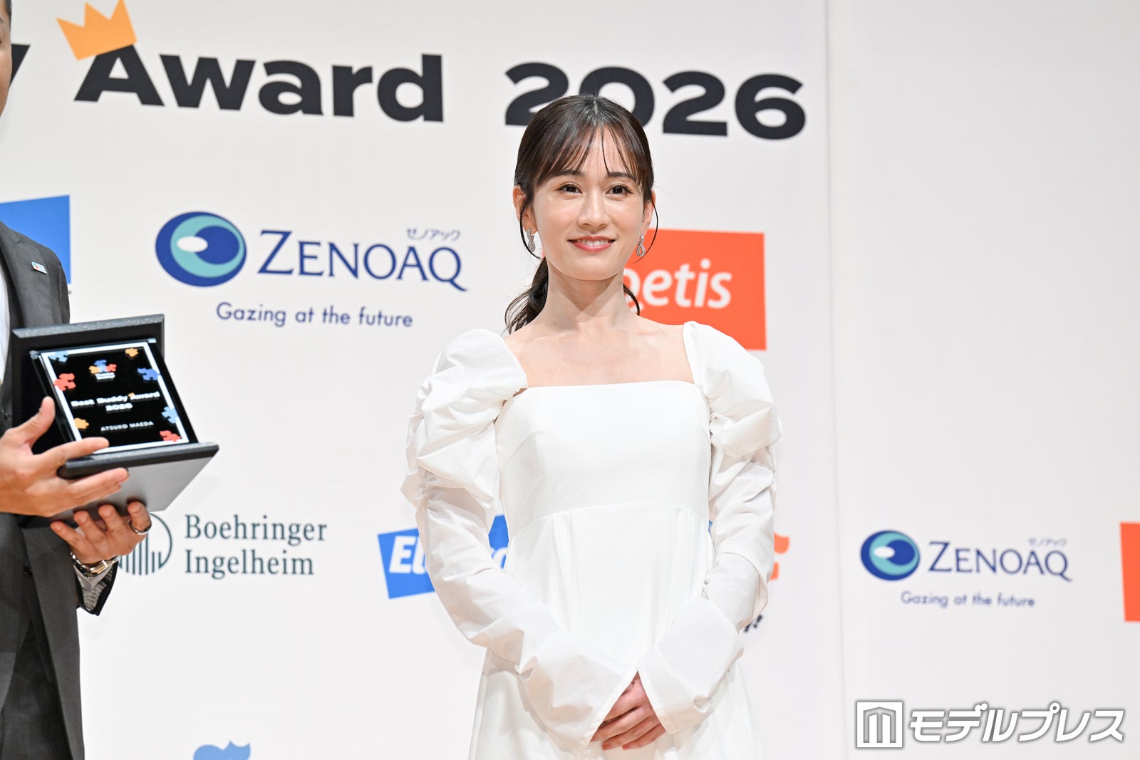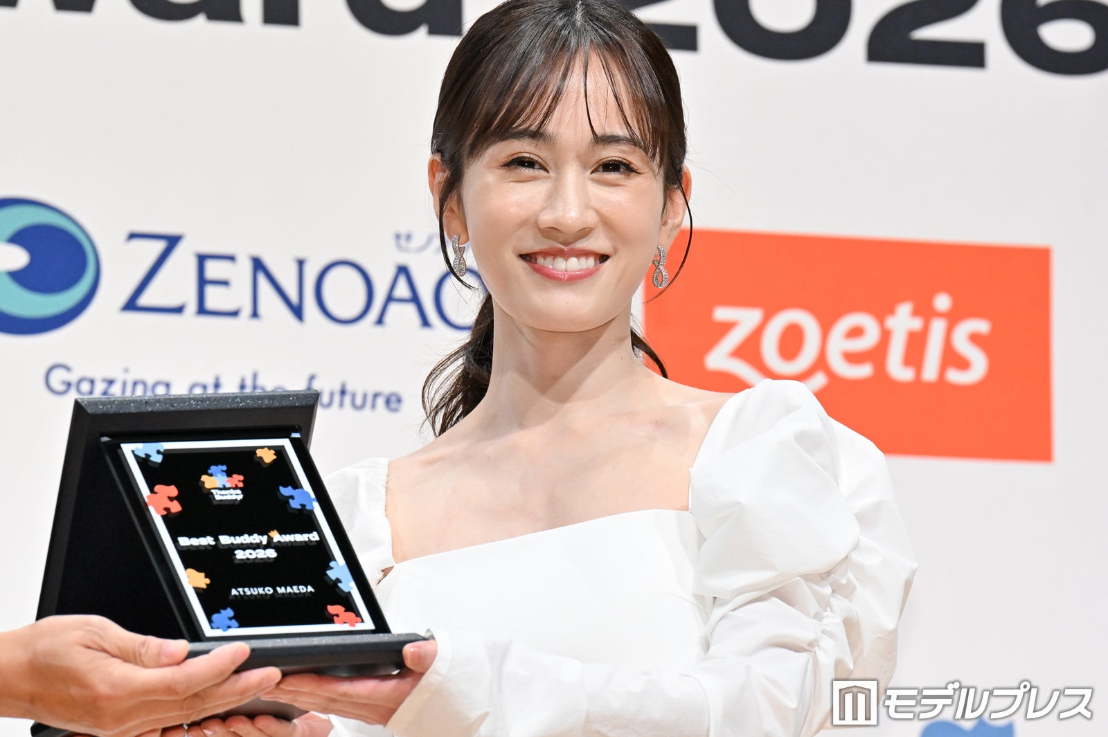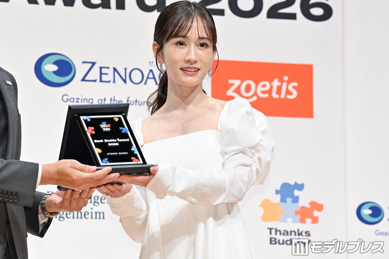 女優の前田敦子が23日、都内で行われた「ベストバディアワード2026」授賞式に、獣医師の上野弘道氏、小林元郎氏とともに出席。初代受賞に喜びの様子を見せた。