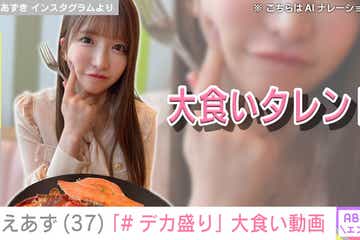 “女子高生みたい”水着姿が話題・もえあず(37)、“デカ盛り”を大食いする姿に反響「さすがっ!」「可愛いし大好き!」