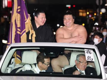 霧島が上半身裸で優勝パレード 笑顔で沿道の祝福に応えるもSNS「てかなんで霧島裸なの!?」「雨降ってるし寒そう」「風邪を引かないように~」