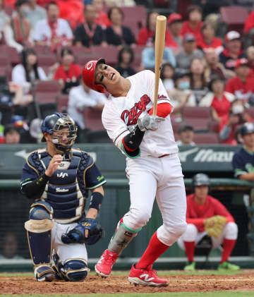 「広島-ヤクルト」(4日、マツダスタジアム) 広島の小園海斗内野手(25)が代打で登場。死球で出塁し...