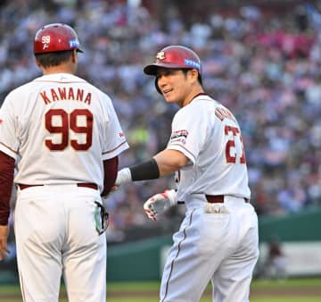 「楽天-西武」(4日、楽天モバイルパーク) 今季限りで現役を引退する楽天の岡島豪郎外野手が八回、代打...