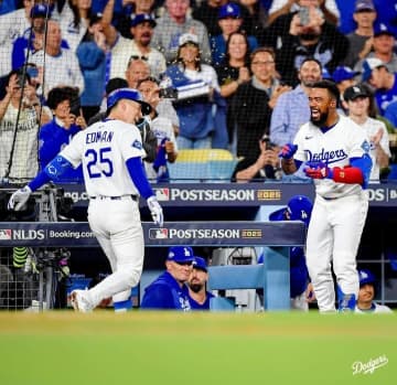 ドジャース エドマンの先制ソロに本拠地大歓声!PS2号弾 スアレスの代わりばな初球を一閃 左中間にたたきこむ