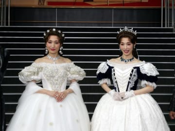 俳優の望海風斗と明日海りおが9日、都内で開かれた、Wキャストで主演するミュージカル「エリザベート」(...