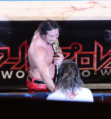 辻陽太「棚橋社長、やろうぜIWGP」グローバル王座戴冠で指名 死闘ゲイブ・キッドと握手→「無所属」とWDの両軍が急接近、共闘も?