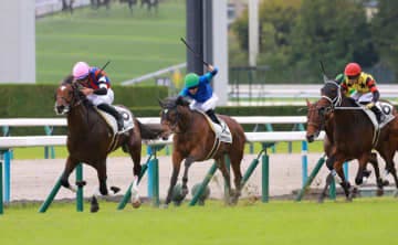 「新馬戦」(19日、京都) 先行した5番人気のミルトベスト(牡2歳、父ファインニードル、母ブラックヒ...