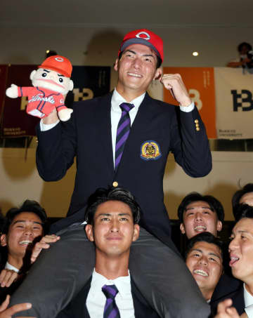 「プロ野球ドラフト会議 supported by リポビタンD」(23日、都内ホテル) 広島からドラ...