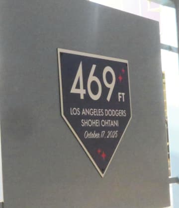 大谷翔平の衝撃場外弾 記念プレート設置の様子を球団が公開 本拠地の新名所に?WS第3戦でファンにお披露目