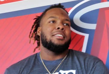 ゲレーロJr.がド迫力ファッションで球場入り スニーカーと刺しゅうの色を合わせるオシャレな一面も
