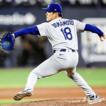「ワールドシリーズ・第6戦、ブルージェイズ1-3ドジャース」(31日、トロント) ドジャースの山本由...