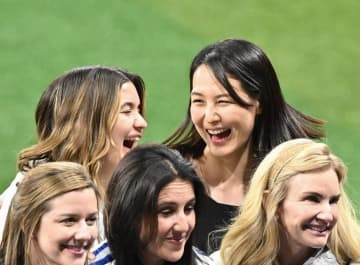 「ワールドシリーズ・第7戦、ブルージェイズ-ドジャース」(1日、トロント) ドジャースの奥さま達で構...