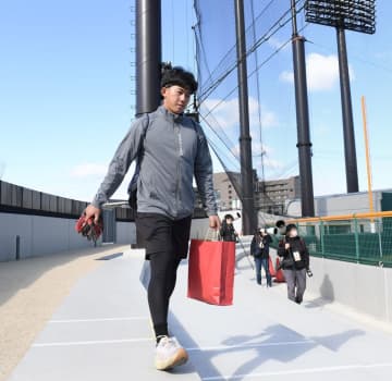 5日に「虎風荘」に入寮した阪神の新人7選手が6日、尼崎市の2軍施設SGLスタジアムで自主練習。ファン...