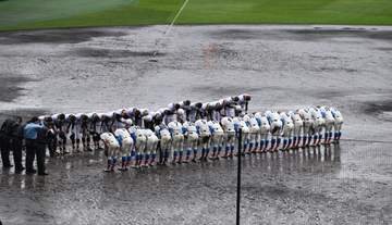 「選抜高校野球・2回戦、花咲徳栄-日本文理」(25日、甲子園球場) 試合開始直後から小雨が降り続け、...