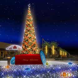 今年4月13日の開業後初となるイルミネーションのコンセプトは「常夏のビーチリゾートクリスマス」。施設正面前の広場には、ビーチに押し寄せる波を光によって演出したブルーの海と、カラフルな熱帯魚をイメージしたイルミネーションが登場。隣にはサーフボードやビーチパラソルなどで装飾した白い砂浜に、温かみのあるゴールドをベースとした天へ昇る光が7色に変化する高さ10mのクリスマスツリーを設置する。さらにメインゲートの椰子の木をゴールドのLEDで彩り、トロピカルな夜のリゾート空間を合計約6万球のLEDで演出。施設内の飲食店ではクリスマス限定メニューも展開される。(モデルプレス)