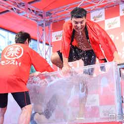 そんな上島だが、イベントステージには、なんと本物の熱湯が入った浴槽が用意されており、さっそく、熱湯風呂に挑戦することに。上島が浴槽に近づくと、付近の道路を緊急車両がサイレンを鳴らして通過し、ダチョウ倶楽部の3人が「音声的にマズイ!」とうろたえ始める。突然の“ハプニング”とダチョウ倶楽部の絶妙なアドリブで、会場は笑いに包まれた。見事、熱湯風呂のギャグを披露し、肥後は「まさか109でやるとは思わなかったな。よかった、よかった!」と感無量の様子。寺門は「(熱湯風呂には)1000回は入っているでしょうね。昔、レギュラーもありましたから。熱湯コマーシャルもありました。これで、ずっと食い繋いでいますから!」と誇らしげに胸を張った。
