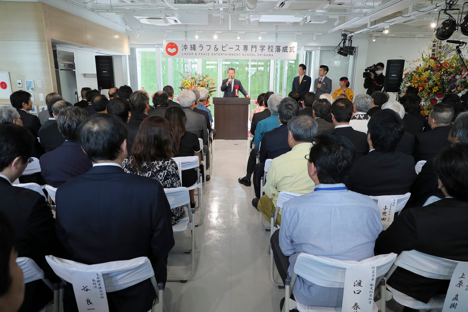 吉本興業は、2018年4月「学校法人ラフ&ピース」を設立し、 エンターテインメント総合専門学校「沖縄ラフ&ピース専門学校」(2学科4コース)を沖縄県那覇市に開校。同校は、認可校としては沖縄初となるエンタテインメント総合専門学校として、「あそぶガッコ。」をテーマに沖縄から世界へ通じる人材を育成する。