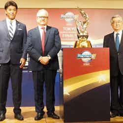 会見に出席した日本代表(侍ジャパン)の稲葉篤紀監督は「初めて優勝トロフィーを目にし、監督として初参加ということもあって、いま大変身の引き締まる思いをしています。後悔のないよう、最高の準備をして、熱い戦いをして、優勝に突き進み、東京五輪に弾みをつけていきたい。そして、日本代表のユニホームに憧れる子どもが一人でも増えてほしいと、ひとりの野球人として願っています」と話した。チームのモットーに「スピード&パワー」を掲げる稲葉監督は選手選考について、「選手を試す段階は終わったと思っている。熱い思いを持った選手を選び、勝てるチームをつくっていきたい」と決意を新たにした。