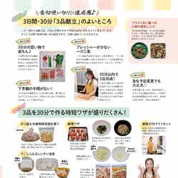 まとめ買いは無理せず3日に1回、3日間の献立をあらかじめ決め、食材を使い切ることで「考えない」「すぐできる」「我慢・無理しない」「おいしい節約献立」を実現。もちろん、彼女の人気のヒミツ・ご飯がすすむボリュームたっぷりの豪華さはよりパワーアップし、3日間献立×10パターンのレシピを紹介している。