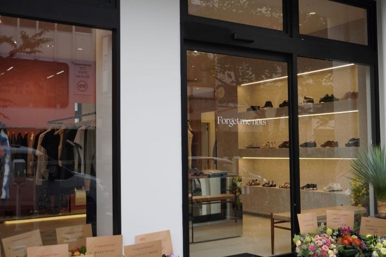 スポーツブランドのスニーカーとデザイナーブランドを掛け合わせた提案が強みの専門店「フォーゲットミーノッツ」は9月12日、名古屋店をオープンした。代官山、福岡に次ぐ3店目。出店を通じて、地元客への認知拡大、顧客化につなげる。