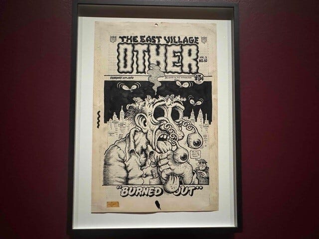 カウンターカルチャー紙「The East Village Other」の1970年2月11日号のこの表紙は、「Burned Out」(燃え尽きた)と名付けられている。前年の1969年にはニクソン大統領が就任した。サイケデリックなドラッグカルチャーやフリーラブの60年代から保守政治に向かいつつある時代、イーストビレッジの人々の気分を描いたのだろう。