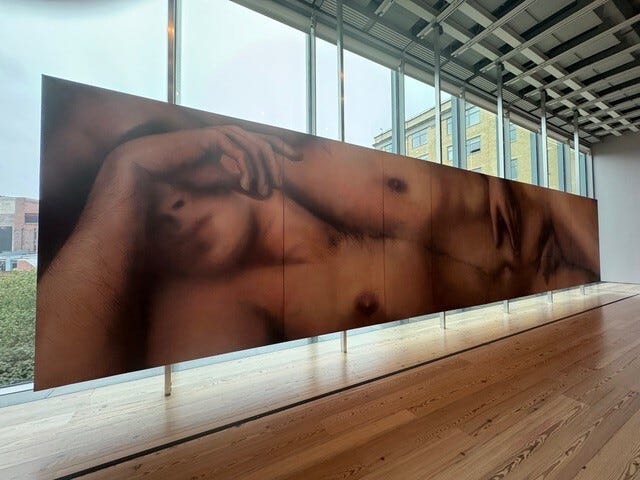 9つのパネルから成るハロルド・スティーブンソンの「The New Adam」(1962年)のモデルを務めたのがクイア(性的マイノリティーを包括的に表す言葉)映画のアイコン、サル・ミネオで、この作品がスティーブンソンの恋人、ティモシー・ウイローバイへのオマージュというのは、ミケランジェロの「アダムの創造」へのアンチテーゼではないだろうか。