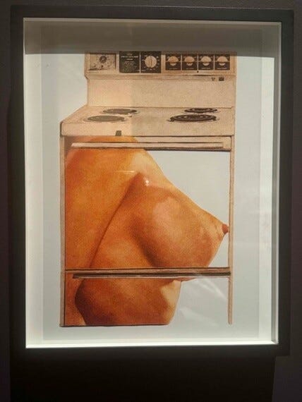 例えば、マーサ・ロスラーのこの作品、「Kitchen I, or Hot Meat」(1966−72)には、女性が家事をするものと決めつけられていることへの怒りや皮肉が感じられる。