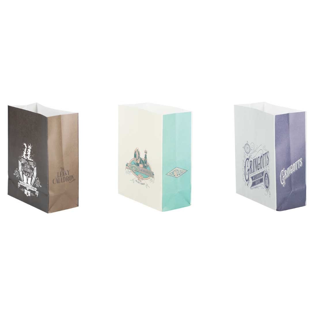 左から漏れ鍋、ハニーデュークス、グリンゴッツ銀行 また、「ハリー・ポッター」シリーズに登場する「ハニーデュークス」「三本の箒」などをモチーフにしたペーパーバッグセットなども見逃せません。