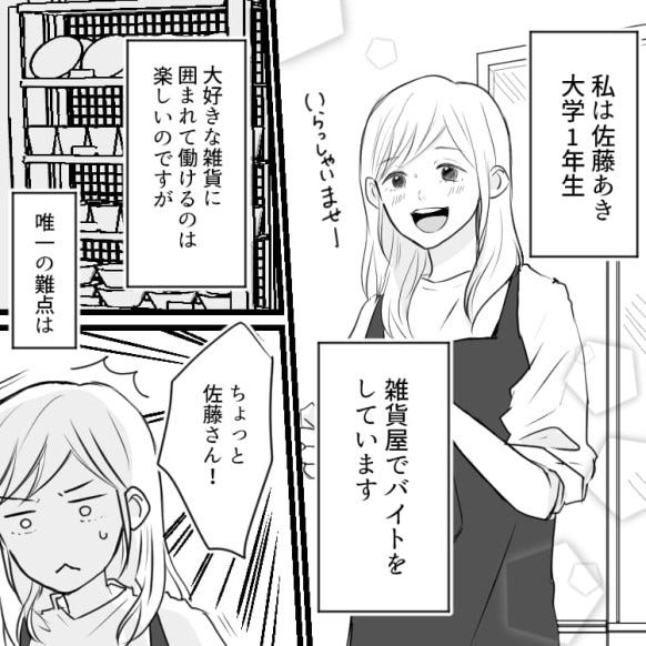 雑貨屋でアルバイトをしている主人公。基本的には仕事をするのが楽しいと感じているようですが、少し悩みがあるようです。
