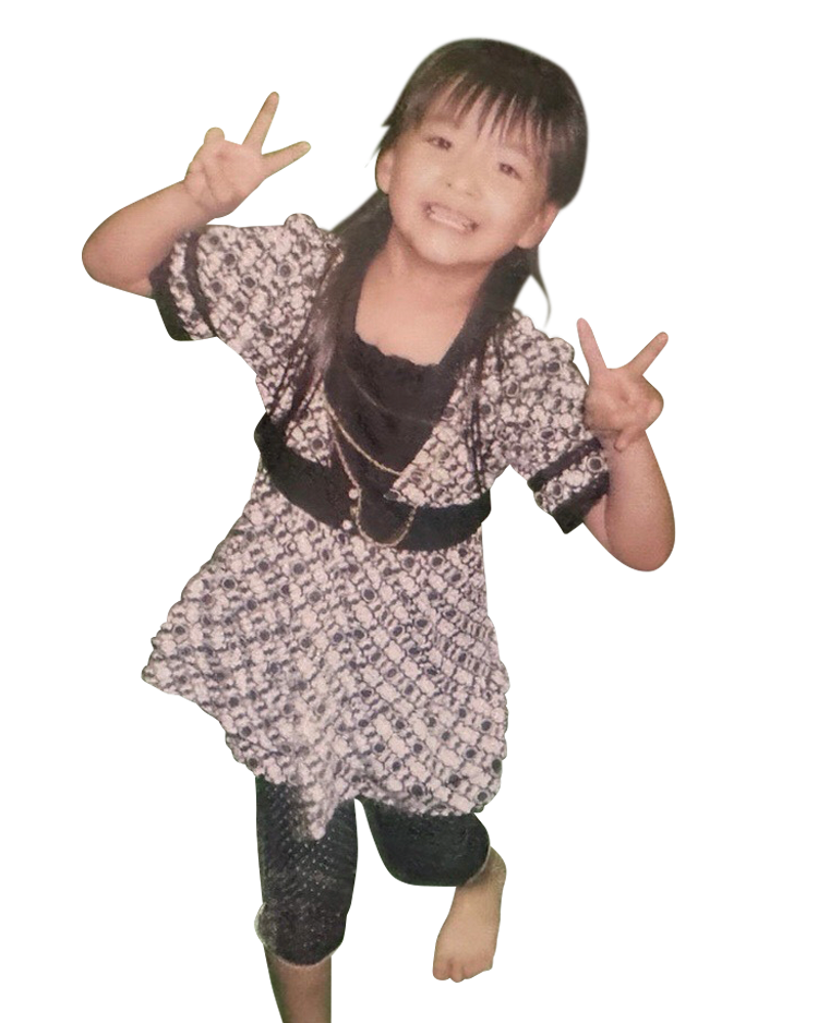 「これは5才の頃のわたし。休みの日は家族と遊園地や温泉に出かけたり、