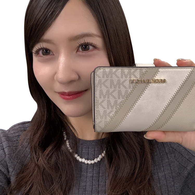 「2年ほど前にひと目惚れで買ったお財布。小さめのバッグでも持ち運べるので便利です」
