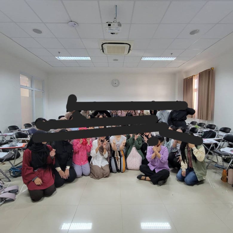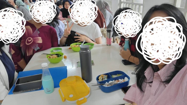 入室して座ると、すぐに何人かのインドネシア人学生に囲まれ、怒涛の会話ラッシュ。