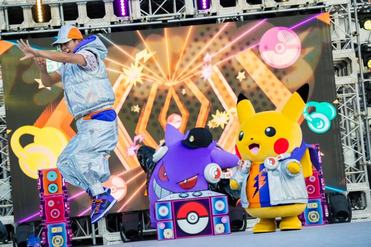 今年はショー内容も一新され、双子のポケモントレーナー“ブンブン&バンバン”が登場。DJゲンガーをめぐって対立した2人が、それぞれバケッチャとヒトモシを召喚し、ゲストを巻き込んだダンスバトルを展開します。バトルの結果によってエンディングが変わるという仕掛けもあり、会場の熱気は最高潮に。ゲストが見てノルだけではなく、参加して楽しめる要素が追加されたことで、より没入感があり、思わず自分がショーを見ていることも忘れて踊り狂ってしまいますよ!