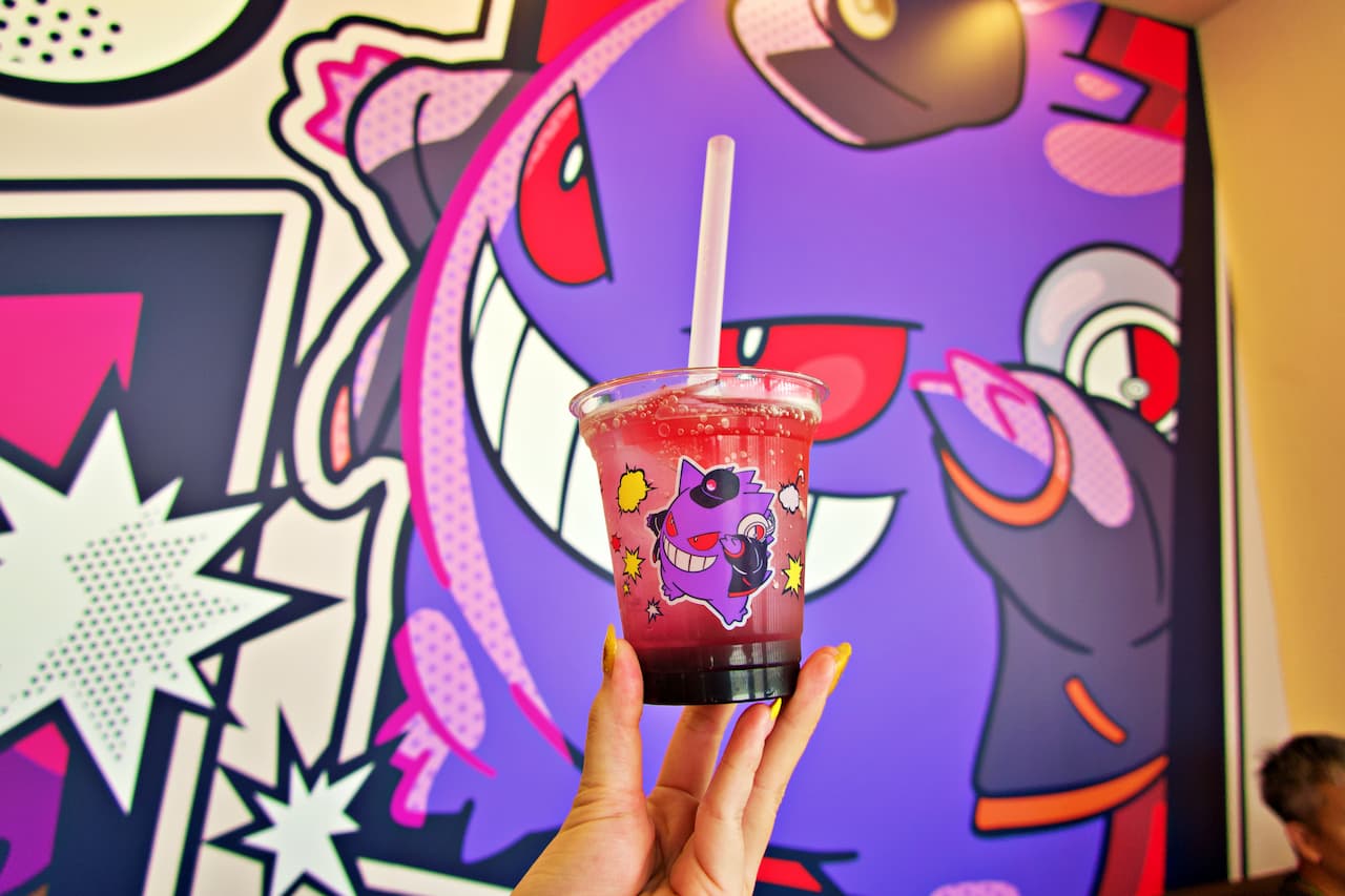 ドリンクは「ノリノリ! DJゲンガーのグレープソーダ」がおすすめ。パチパチ弾ける炭酸とゼリーの食感が楽しく、見た目もまさにハロウィンフェス!