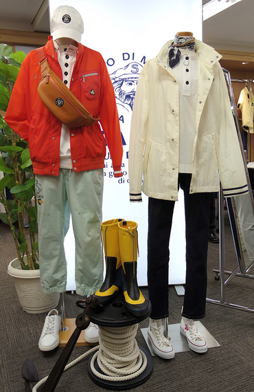 ハトメやロープ、碇(いかり)をモチーフにしたオリジナルボタン、イタリアならではの色など、マリンブランドらしさは継続しつつ、製品一つの中に盛り込む色数を減らしたり、モチーフを小さめにしたりするなど、誰もがより楽しみやすいアイテムの提案を心がけた。