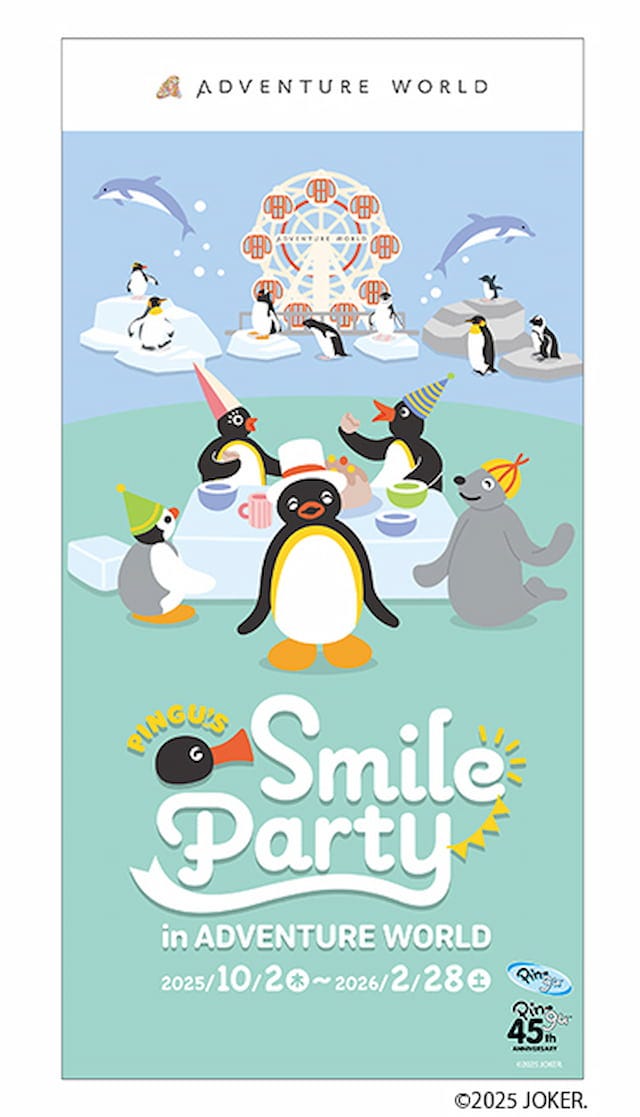 和歌山県白浜町の「アドベンチャーワールド」が、世界で一番有名なペンギン「ピングー」とコラボレーション。2026年2月28日(土)までの期間限定で「PINGU TMʼs SMILE PARTY in ADVENTURE WORLD」を開催。