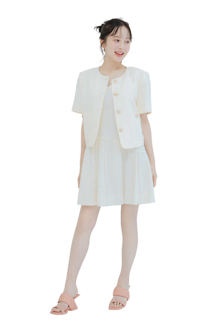 ジャケット、ワンピース:Lookast サンダル:United Nude