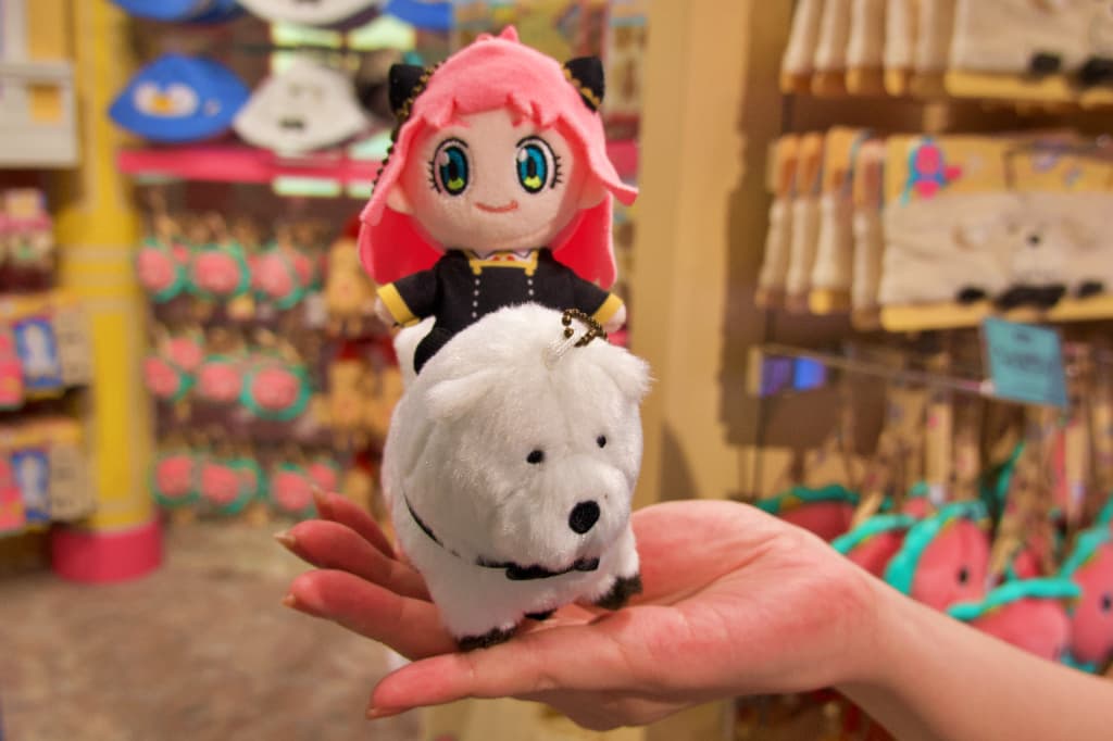 ライドの世界がそのまま再現されたショップでは、アーニャやボンドのぬいぐるみ、カチューシャ、キーチェーンなどが勢ぞろい!