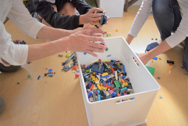 子どもが大好きなレゴブロック。以前は色別や種類別に分け、細かく仕切ったケースを使っていました。