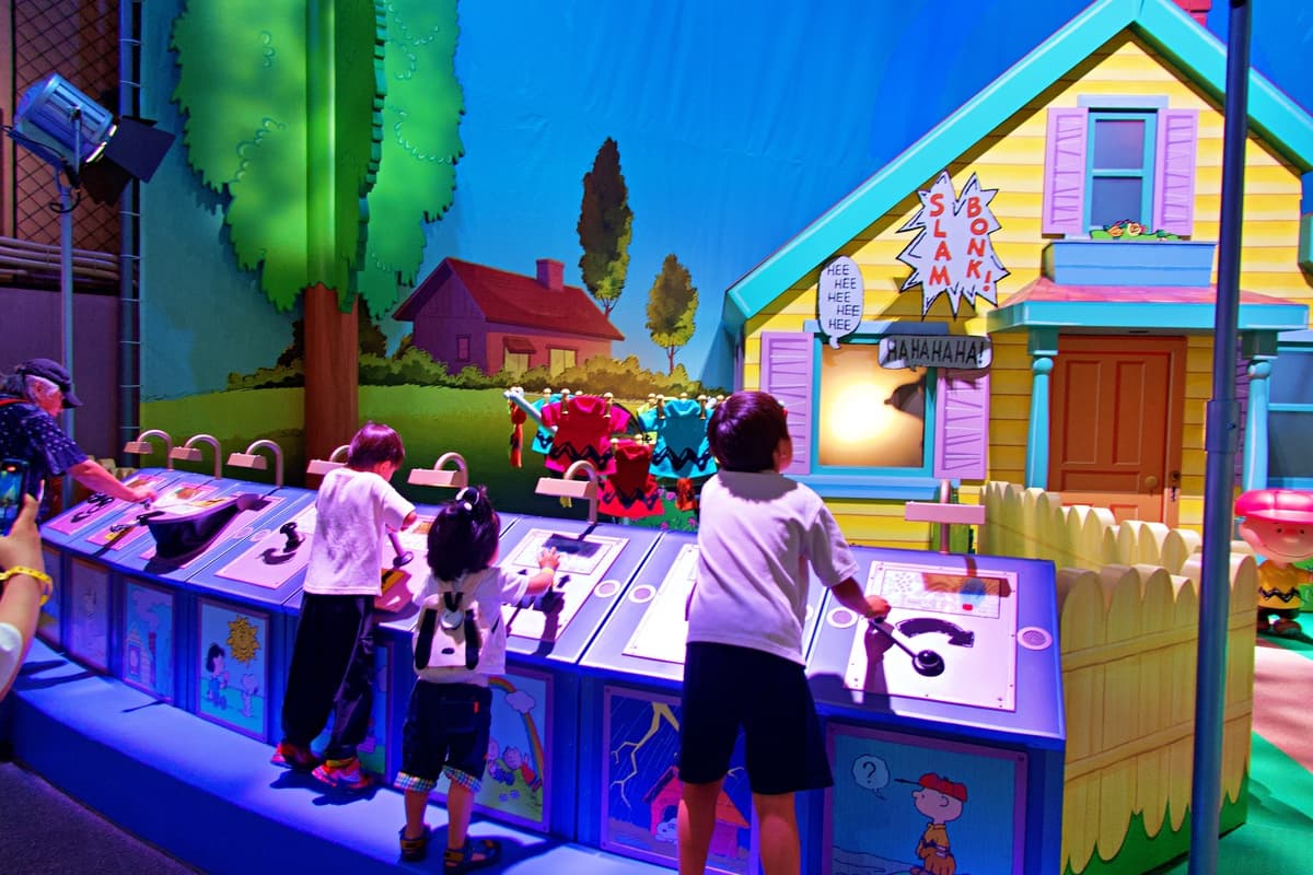 8つのレバーで映画の撮影セットを組み立てる体験ができる「チャーリー・ブラウンのお隣さん」や、衣装づくりを手伝う「サリーのアート・デパートメント」、効果音制作を体験できる「シュローダーのサウンド・スタジオ」など、人気アクティビティは健在。
